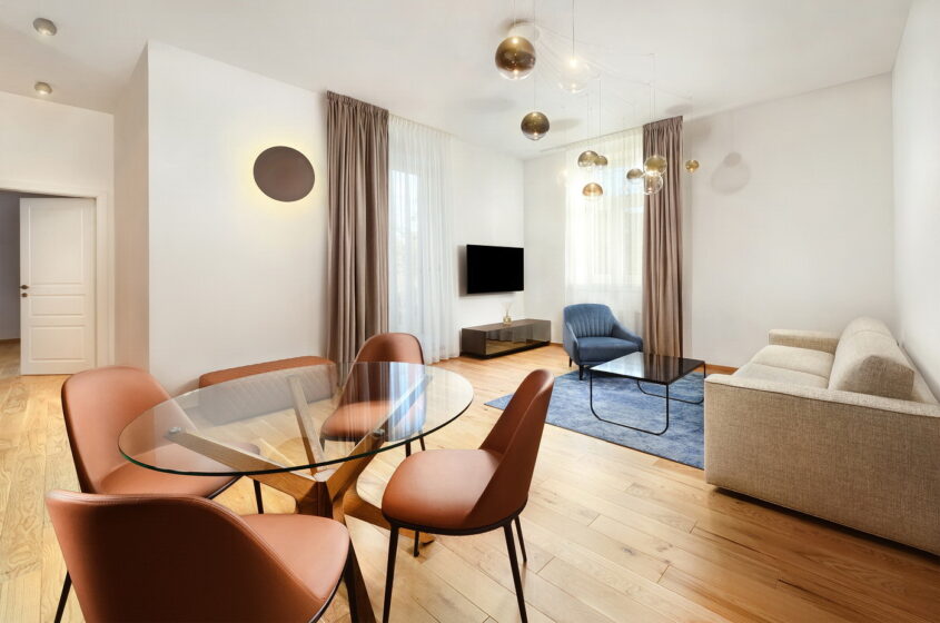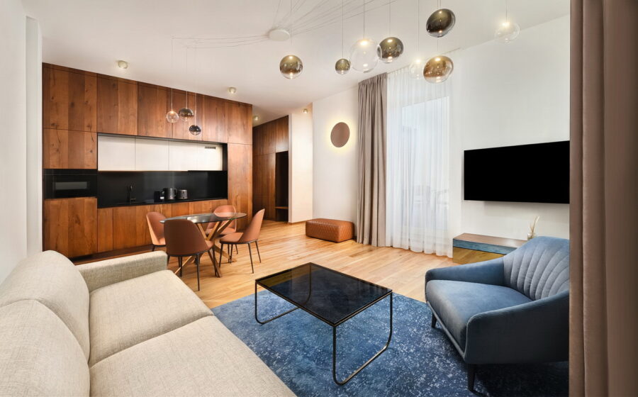 Apartmán s jednou spálňou poskytuje komfort pre 2-4 osoby. Kvalitné luxusné zariadenie a SMART technológie dopĺňa útulná terasa.
