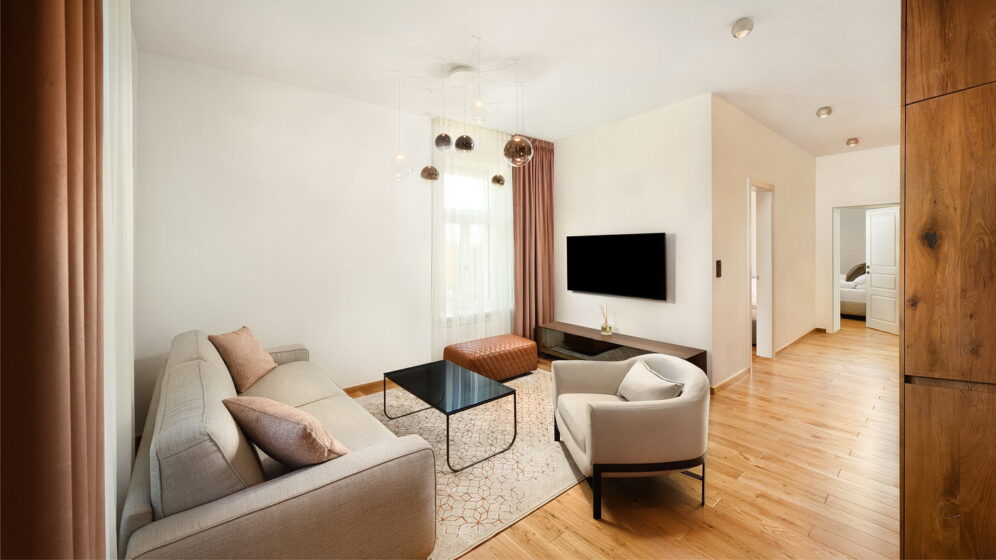 Two bedrooms and a cosy living area with a kitchen—this is a two-bedroom apartment, ideal for families with children or smaller groups. With an area of 63 m2, the two-bedroom apartment features a fully equipped kitchen as well as two bathrooms. It is located on the second floor, facing the quiet park, and thanks to its complete amenities, it provides everything for perfect relaxation. The accommodation includes the option to use the services of Hotel Lomnica*****.
